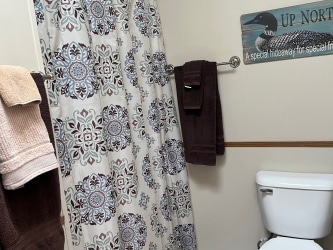 Our cabin has two comfortable queen bedrooms and two baths. The hall bath has a step-in shower with grab bars and a seat for those with limited mobility.